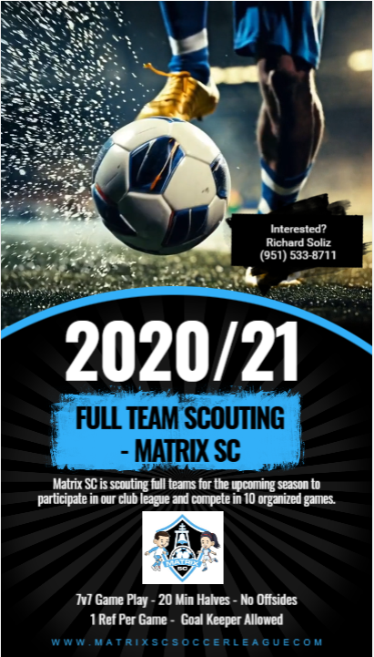 Welcome to Matrix SC, Riverside’s premier soccer league for players of all ages and skill levels. Whether you’re just starting out or looking to compete at a higher level, our community-focused league offers a fun, competitive environment for everyone. Join us and experience the passion, growth, and camaraderie that make soccer more than just a game.