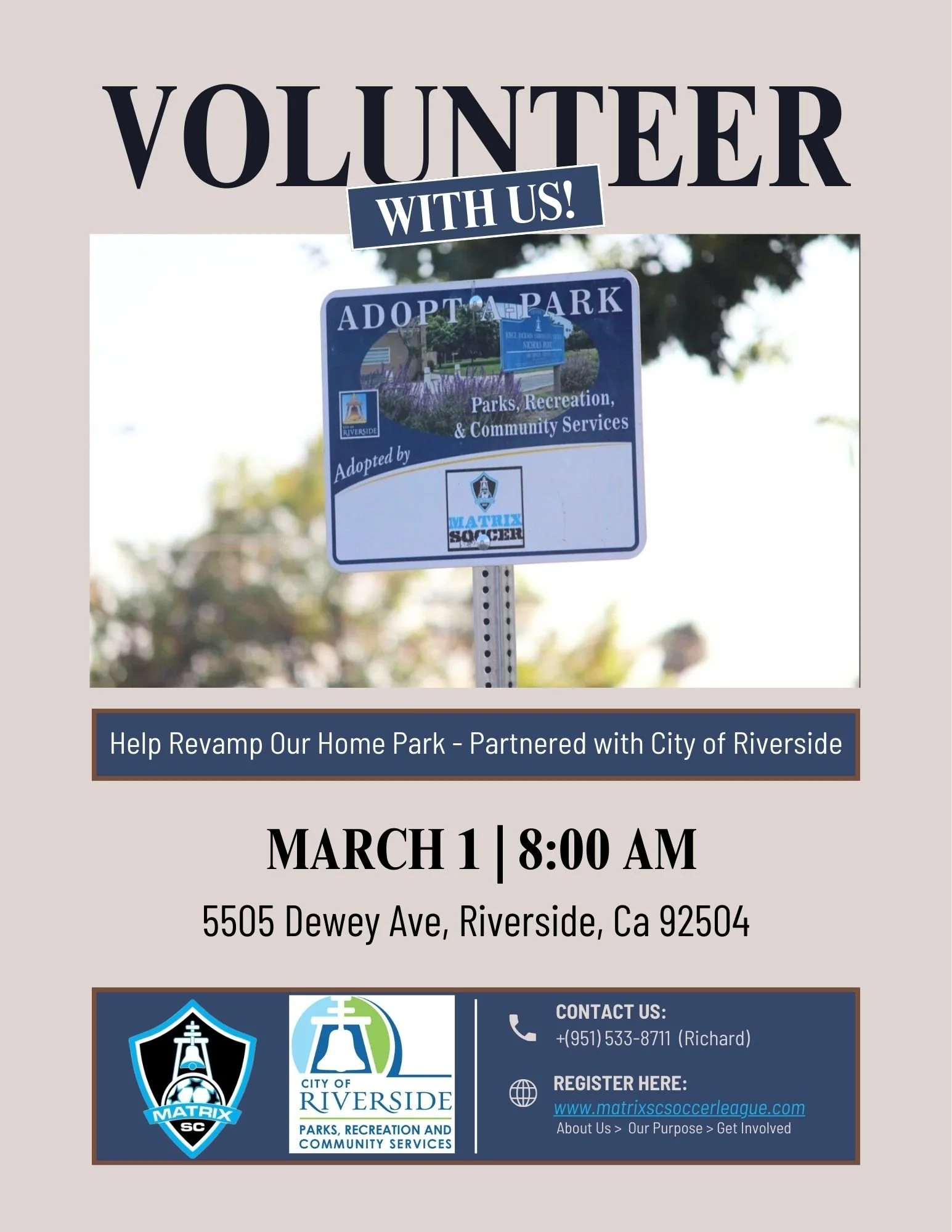 Volunteer alongside our League to partner with the City of Riverside Parks & Rec for an annual revamp of Nichols Park to ready the park for the GRAND Opening of the new playground! Sign up in the link below and be apart of something great!